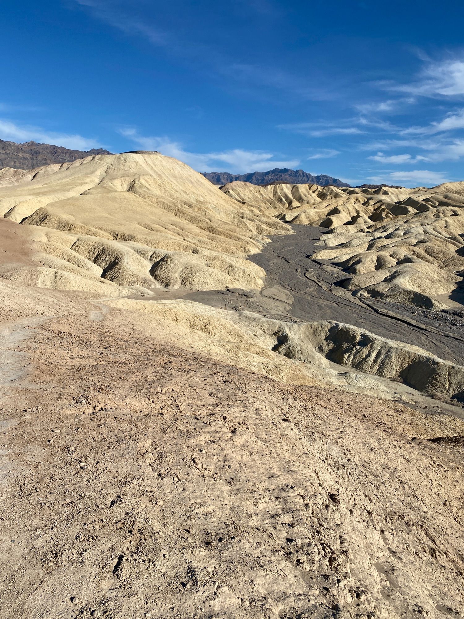 Zabriskie Point Trail in Death Valley National Park offers one of the most iconic views in California. This trail provides stunning panoramas of the valley and the surrounding badlands, making it a must-visit for anyone interested in hiking in Death Valley. To get the best experience, be sure to consult the Zabriskie Point Trail map before you set out. This trail is well-known for its breathtaking views, especially at sunrise or sunset, when the colors of the landscape transform into a dramatic display. The trailhead is conveniently located at the Zabriskie Point parking area, which provides easy access for hikers. Parking at Zabriskie Point is straightforward. The parking lot is located right next to the trailhead, which makes it convenient to start your hike. However, it can get quite busy during peak times, especially in the cooler months of spring and fall. For a quieter experience, consider visiting during the early morning or late afternoon. The trail surface is mostly paved and accessible, though some sections are gravel and may be uneven. This makes it suitable for a range of fitness levels, but sturdy footwear is still recommended. The area around Zabriskie Point is generally not very pet-friendly, so it’s best to leave pets at home. Additionally, while the trail is relatively short, it’s important to stay hydrated and prepared for the extreme heat, particularly in summer. Seasonality plays a significant role in your visit to Zabriskie Point Trail. The best times to hike are during the cooler months from October to April. In summer, temperatures can exceed 120°F, making it less ideal for hiking. Always check the weather forecast before your trip and plan accordingly. In summary, hiking to Zabriskie Point provides a unique opportunity to witness some of the most spectacular views in Death Valley. With easy access, stunning photo opportunities, and a variety of seasons to enjoy, it’s a highlight for any visitor to this iconic California national park.