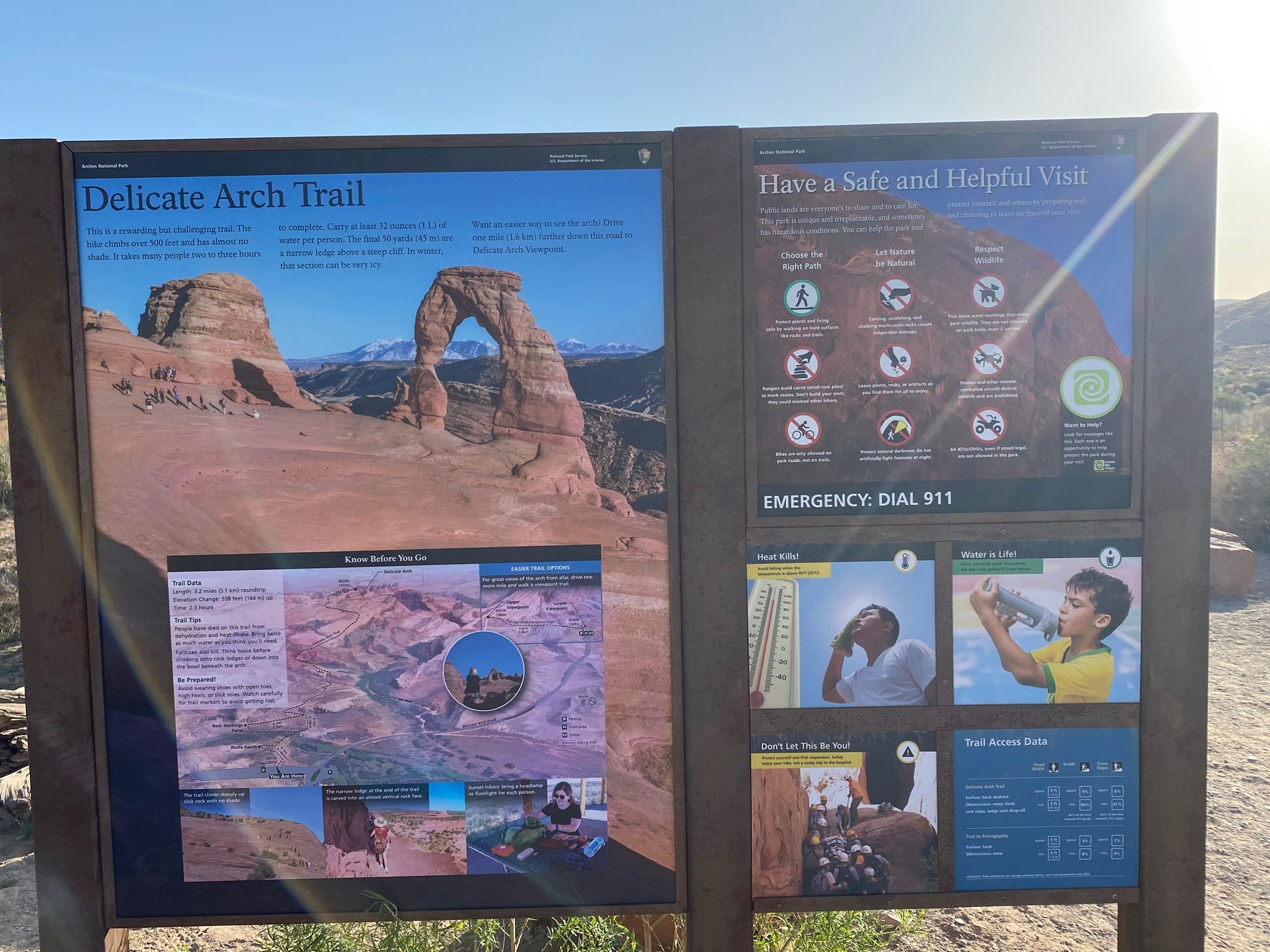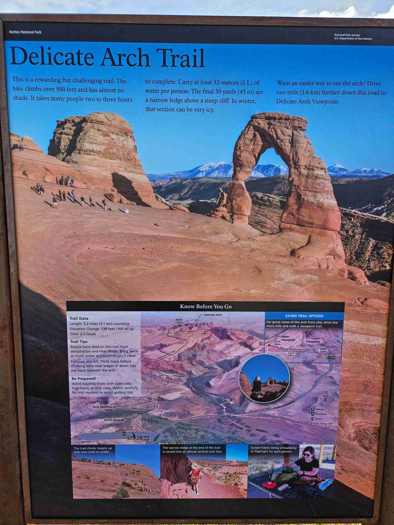 Delicate Arch Trail in Arches National Park, Utah, is one of the most iconic hikes in the state. Known for its striking arch and expansive views, this trail attracts visitors year-round. To fully experience this landmark, it’s helpful to have the Delicate Arch Trail map, which outlines the route and key features. The Delicate Arch hike is a must-do for outdoor enthusiasts visiting Utah. This trail leads to the famous Delicate Arch, a natural sandstone arch with a unique and picturesque shape. The trail itself is moderately challenging, with a mix of rocky paths and gradual inclines. Along the way, hikers are treated to incredible views of the surrounding landscape, making it a memorable adventure. Where is Delicate Arch? The trailhead for Delicate Arch is located within Arches National Park. From the parking area, the trail begins and leads you through diverse terrain, eventually reaching the arch. It is a popular destination, especially during peak tourist seasons. Early mornings or late afternoons are typically quieter times to visit, allowing for a more serene experience. Hiking in Delicate Arch Trail is best from spring through fall when temperatures are more moderate. Summer can be quite hot, so early starts are recommended to avoid the midday heat. Winter hiking is possible, but weather conditions can be unpredictable, with snow and ice making the trail slippery. Parking in Delicate Arch is available at the Wolfe Ranch parking area. This lot can fill up quickly during busy times, so arriving early is advisable. The trail's surface varies from packed dirt to rocky sections, so wearing sturdy hiking boots is essential for safety. While Delicate Arch Trail is not suitable for pets due to the rugged terrain and park regulations, it is family-friendly for older children who can handle the hike’s demands. Nearby, the city of Moab offers accommodations and additional outdoor activities, making it a great base for exploring Arches National Park. For more practical details, including park fees and other visitor information, check the official Arches National Park website. Enjoy the stunning views and natural beauty of Delicate Arch!